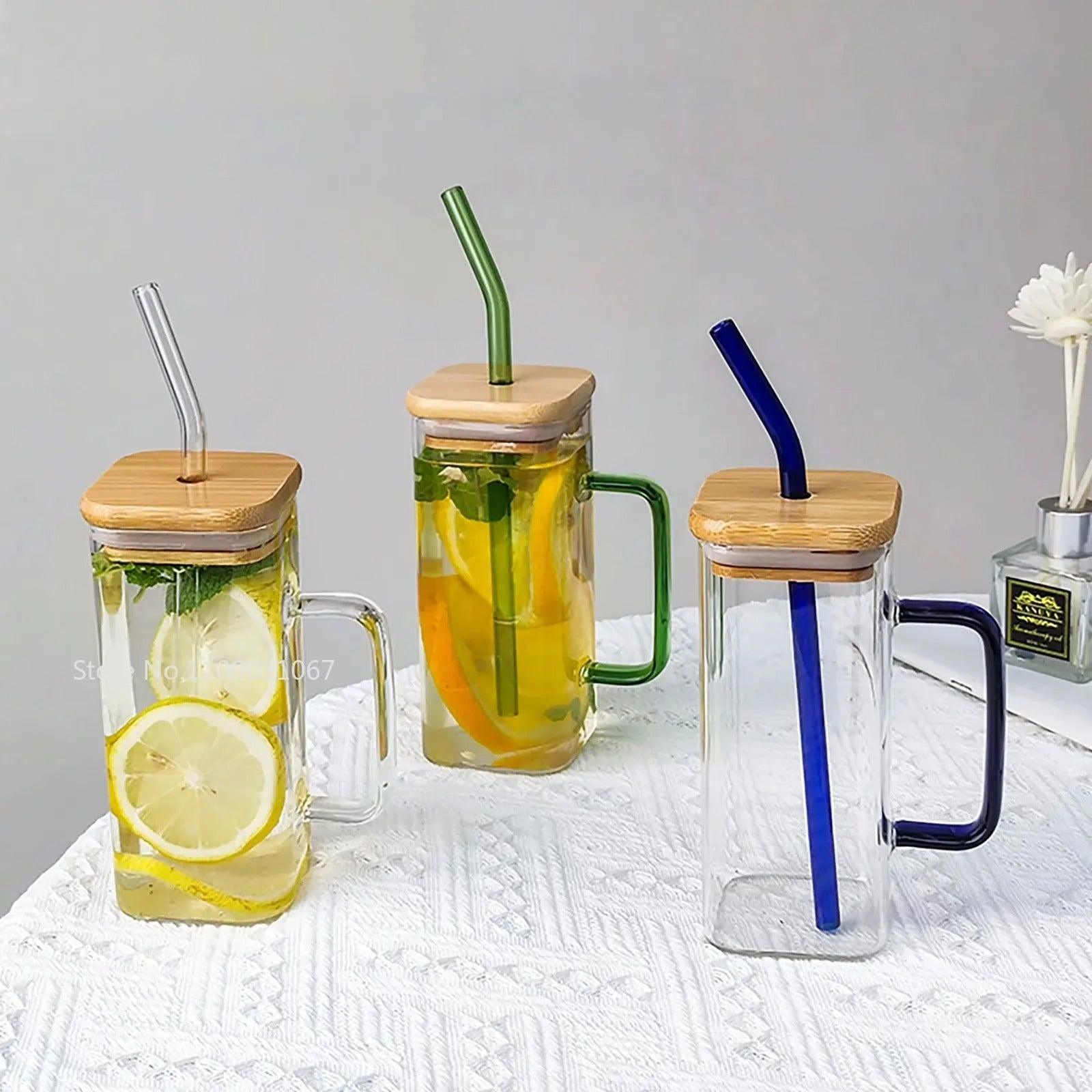 - Excellent Quality: The glass cups with lids are made of 100% high-end glass. The lids are made of bamboo wood, a quickly regenerating and durable material. The straws are also made of glass, so they are reusable.