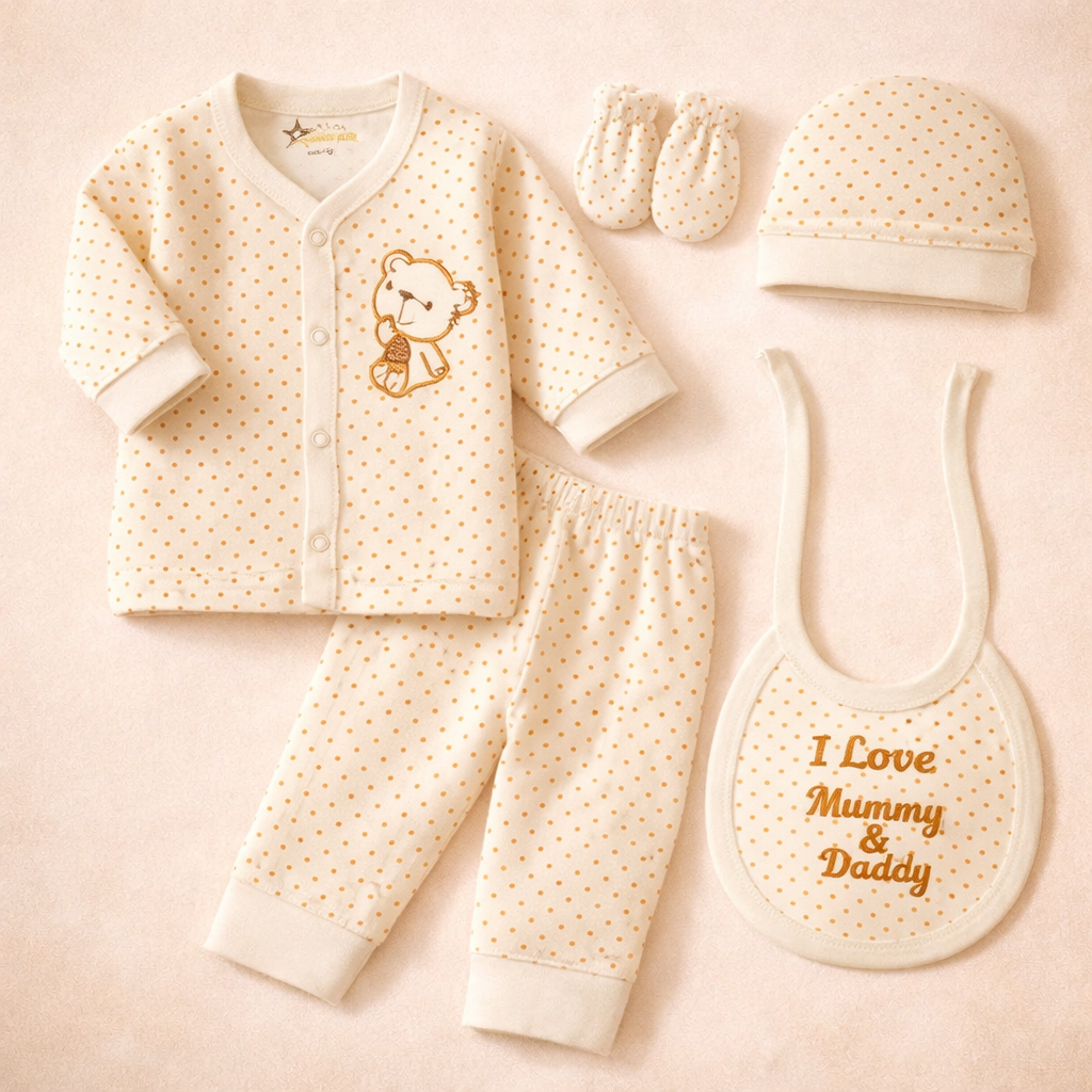 Newborn Baby 5Pcs Gift Set Polka Dots Beige - Sunshine